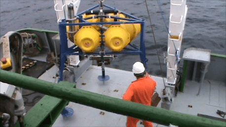 Here it was deployed from the Irish research vessel the Celtic Voyager in Galway Bay, West of Ireland, during a cruise by the National University of Ireland, Galway. The lander remains monitoring the conditions at the seabed for one month, in this case at depth of ~25m. Whilst out at sea during this period, it observes the impact of storm waves on the sediment transport. By making measurements at various heights above the seabed, it can obtain a profile of the benthic boundary layer and allow us to study how this changes during a storm.